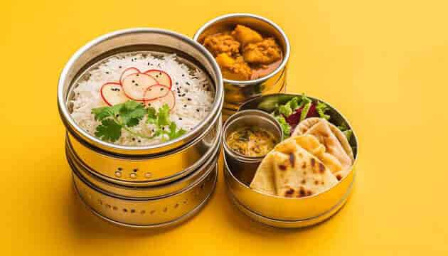 टिफिन सेवा कंपनी के बारे में: हमारी टिफिन सेवा कंपनी आपके लिए ढेर सारे स्वादिष्ट और स्वास्थ्यवर्धक खाने का अनुभव लाने के लिए समर्पित है। हम ताजे सामग्रियों का उपयोग करके विविध व्यंजन तैयार करते हैं, जो शुद्धता और गुणवत्ता का प्रमाण है। हमारे टिफिन में अनियमित भोजन की समस्या का समाधान है, चाहे आप कामकाजी हों या विद्यार्थी। हमारी सेवा आपको समय पर, आपके दरवाजे पर खाना पहुंचाती है। रोज़ाना नए मेनू के साथ, हम आपके स्वाद को ध्यान में रखते हुए खाना बनाते हैं। हमें अपने पारिवारिक भोजन का अनुभव देने का गर्व है।
